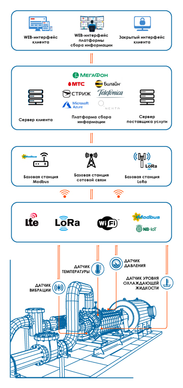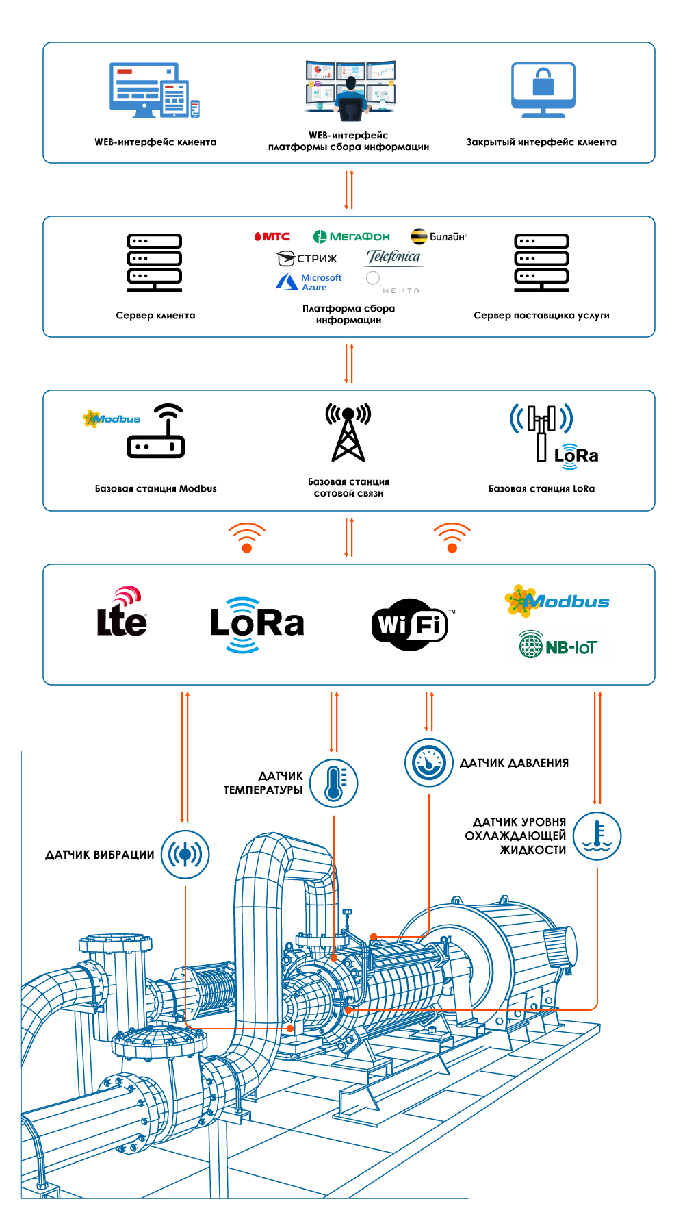В зависимости от условий эксплуатации IOT датчики могут быть выполнены в IP, Ex исполнении. Данное решение реализовано с помощью оборудования разных вендоров, также может быть представлено одним вендором.